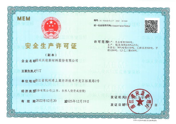 紹興興欣新材料股份有限公司成立于2002年06月27日,占地面積122畝,位于杭州灣上虞經(jīng)濟(jì)技術(shù)開發(fā)區(qū)拓展路2號(hào),現(xiàn)有職工200余人,專業(yè)技術(shù)人員50余人;博士、碩士研究生30余人組成的一支知識(shí)型、專業(yè)化的技術(shù)科研團(tuán)隊(duì)。公司面向全球市場,專業(yè)開發(fā)電子化學(xué)品、環(huán)保化學(xué)品、醫(yī)藥中間體、高分子材料等先進(jìn)新材料重點(diǎn)領(lǐng)域的省級(jí)科技型企業(yè);建有浙江上虞、安徽東至兩個(gè)生產(chǎn)基地。目前為“國家高新技術(shù)企業(yè)”、浙江省“隱形冠軍”企業(yè)、浙江省專精特新中小企業(yè);建有“省級(jí)”研究開發(fā)中心,共建天津大學(xué)浙江紹興研究院電子化學(xué)品研發(fā)中心。